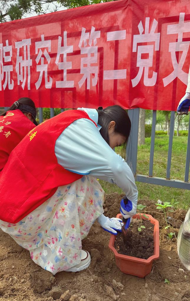 为了贯彻落实习近平总书记关于劳动育人的重要讲话精神,传承与弘扬爱国、进步、民主、科学的“五四精神”,切实强化研究生党员的劳动意识和服务意识,2025年5月25日,BG大游平台研究生第二党支部在太原市晋阳街公园开展了一场“弘扬劳动精神,传承五四薪火”主题党日活动。此次活动由党支部书记任桂平带队,20多名党员和入党积极分子踊跃参加,将劳动教育与党性教育深度融合,让鲜红的党旗在劳动一线高高飘扬。